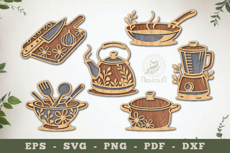 Food Decoration Equipment Cut File Cooking Laser Cutting Home Decor Wall Decor Kitchen Set Kitchen Appliances Lasercut Decoration Bundle
