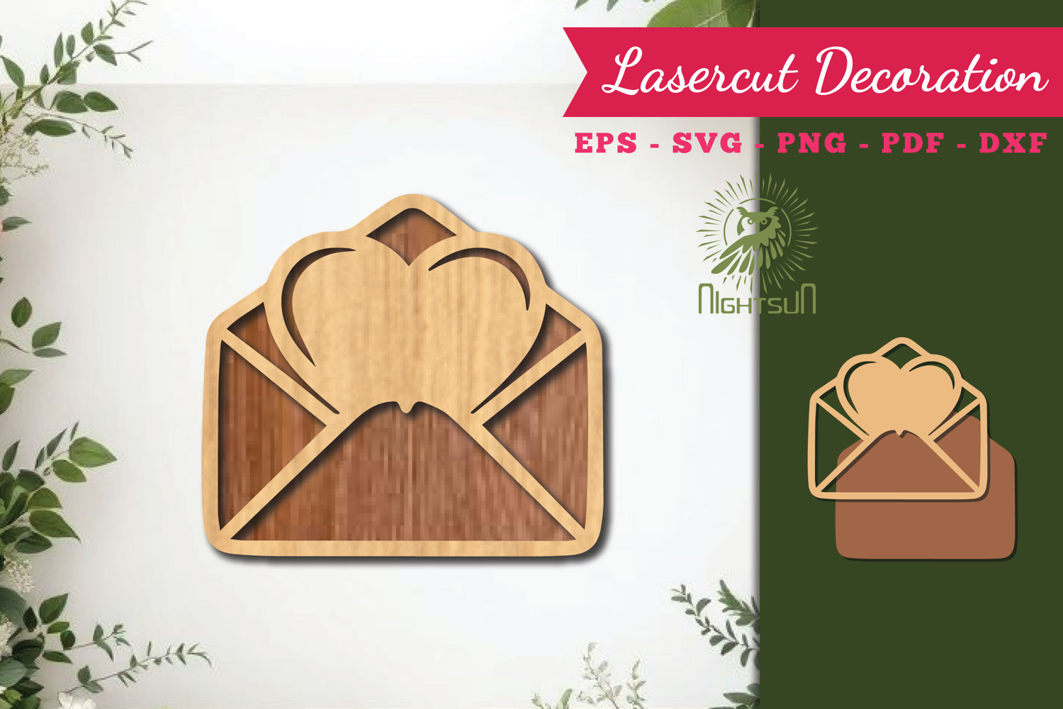 Heart in Envelope Lasercut Decoration SVG example image 1