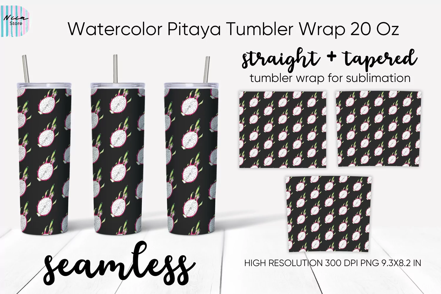 Watercolor Pitaya Skinny Tumbler Sublimation Wrap 20 Oz example image 1