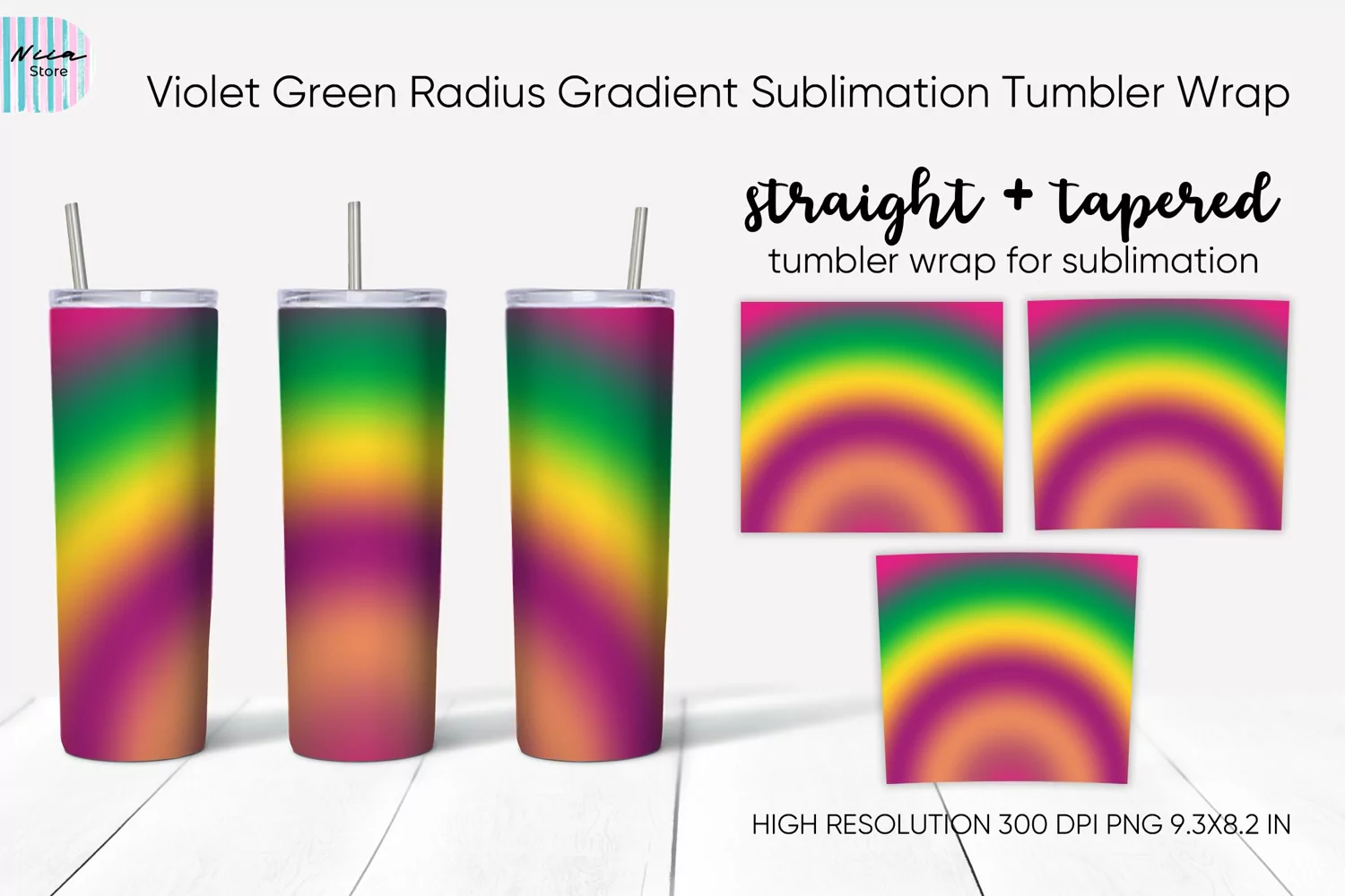 Violet Green Radius Gradient Sublimation Tumbler Wrap example image 1