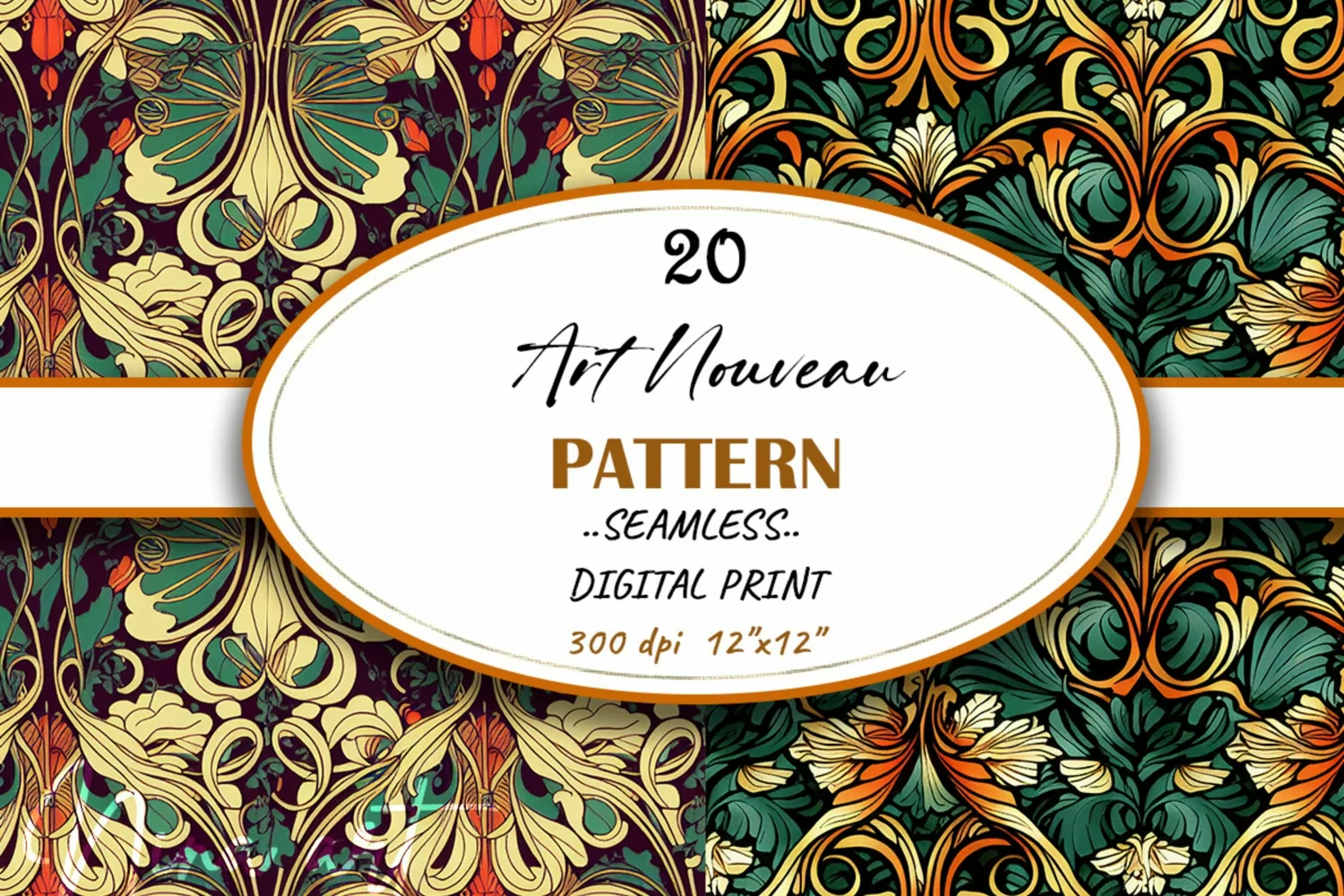 Vintage Floral Art Nouveau Seamless Digital Print
