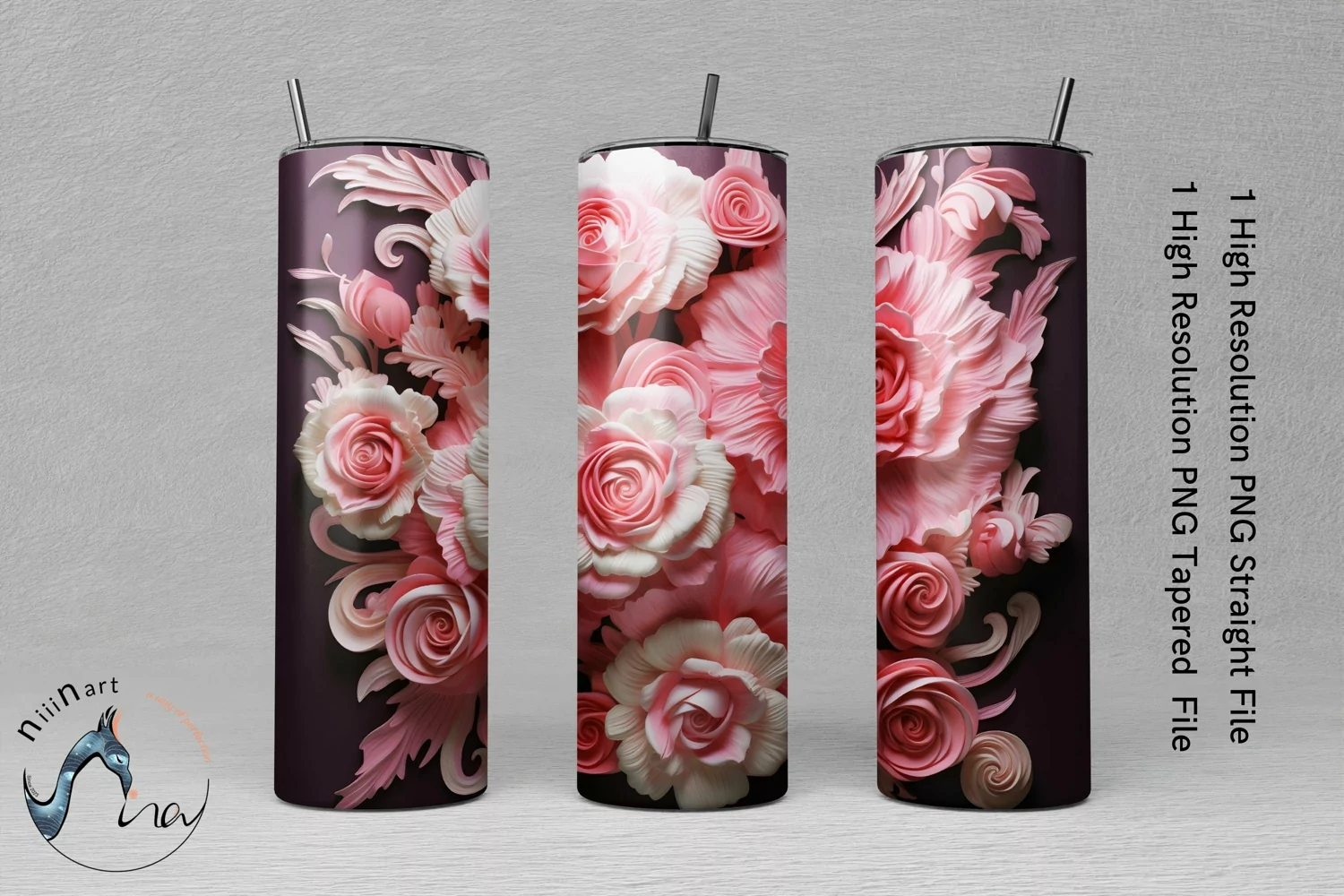 3D Pink and White Floral Skinny Tumbler Wrap Sublimation PNG example image 1