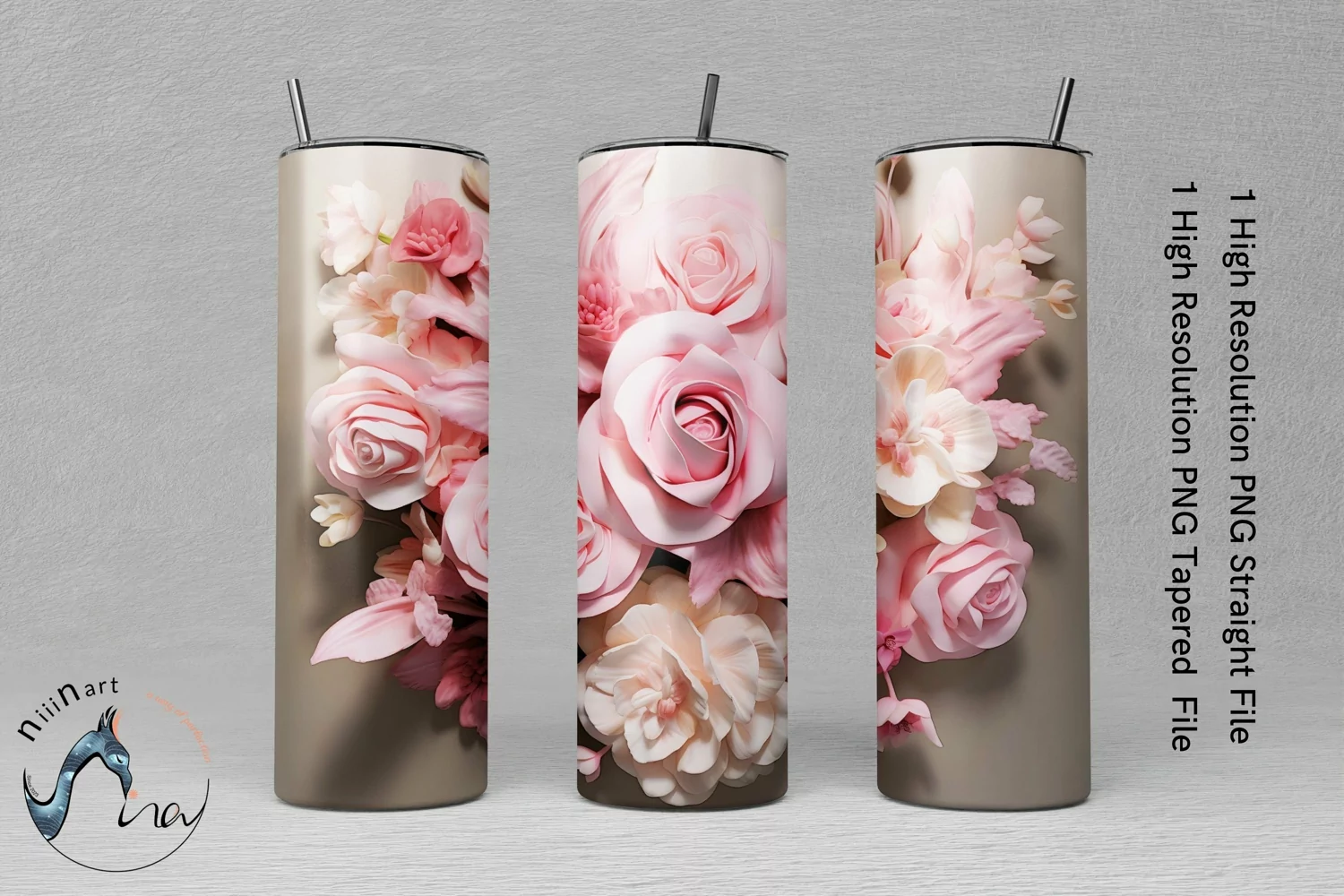 3D Pink and White Floral Skinny Tumbler Wrap Sublimation PNG example image 1