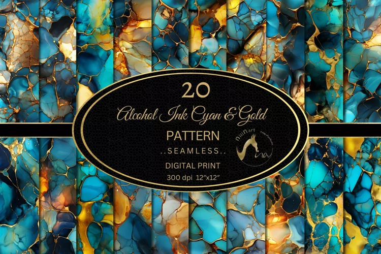 Similar Design Products to Seamless Abstract Digital Paper, Cyan and Gold Veins