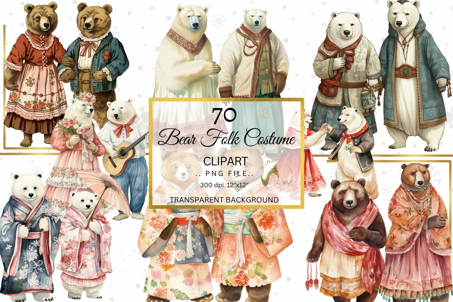 Similar Design Products to Bears in Folk Costumes Clipart, Cosplay Bears in Clothes PNG