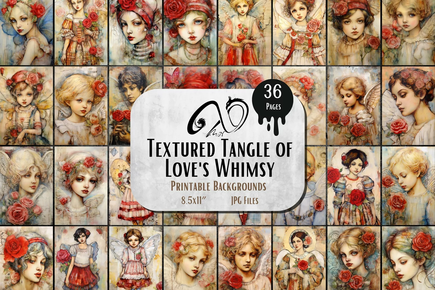 Embark on a whimsical journey into the enchanting realm of love with "Textured Tangle of Love's Whimsy," a digital kit featuring Valentine's Day Gothic grunge mixed media textured paintings of quirky fairies. This collection boasts 36 digital backgrounds, each measuring 8.5x11 inches, meticulously crafted to infuse a touch of whimsy and Gothic charm into your creative projects. Tailored for vintage collage creation and dollhouse paper endeavors, these backgrounds seamlessly integrate into junk journaling, scrapbooking, notebooks, planners, cardmaking, and various craft projects. Purposefully designed to meet all your design needs, these files are presented in the highest quality at 300 DPI and high resolution.