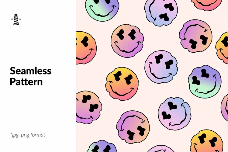 Smile Gradient Seamless Pattern Happy Face Holographic Fabric Pattern Happy Faces Holographic Pattern Digiral Paper Holographic Backdrop