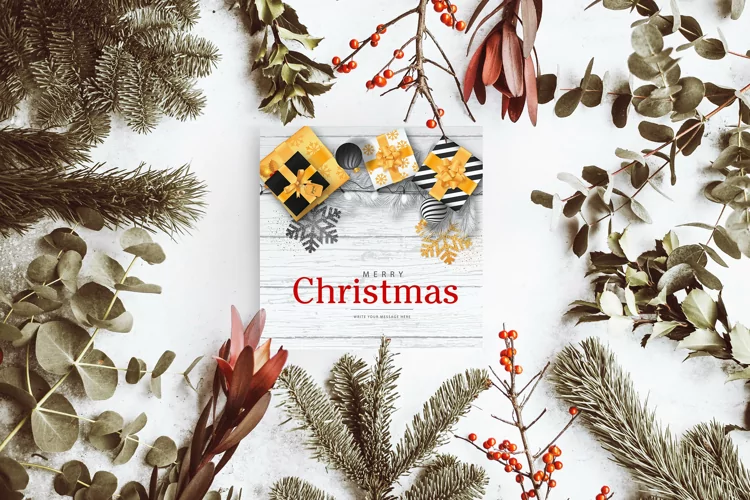 Pine branches and decorations christmas mockupWHAT YOU'LL GET