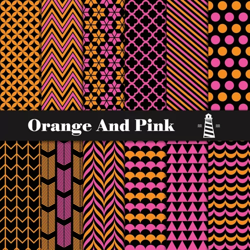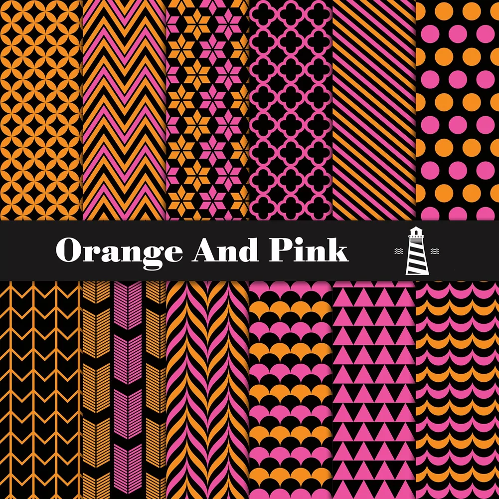 Black Pink Pattern Digital Paper Orange Black Background Scrapbook Papers Patterned Paper Pink Paper Orange Paper