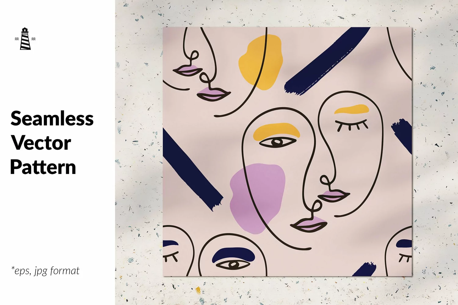 Modern Hand Drawn Contemporary Woman Drawing Face Seamless Pattern Line Drawing One Line Continuous Line