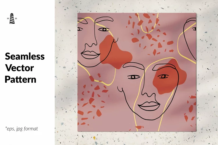 Seamless pattern with continuous line faces. High detailed and carefully hand drawn. 100% vector art.
