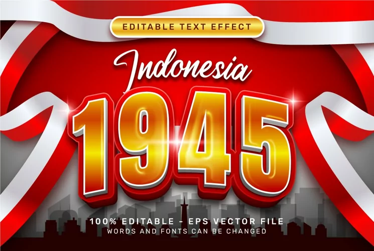 indonesia 1945 3d text effect and editable text effect with Indonesian red and white flag