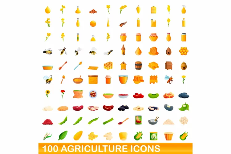 Similar Design Products to 100 agriculture icons set, cartoon style