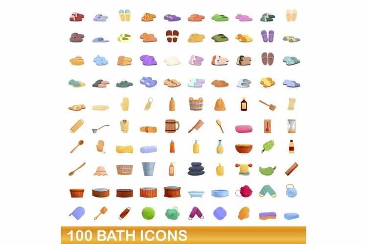 100 bath icons set. Cartoon illustration of 100 bath icons vector set isolated on white background. Formats: JPG, EPS, AI, PSD,PNG, AI