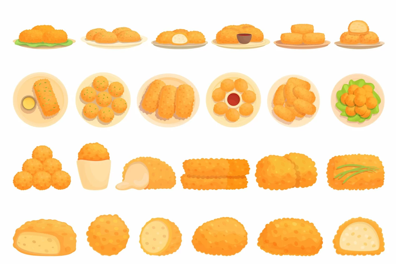 Croquette icons set cartoon vector. Baked ball. Food potato. Formats: JPG, EPS, AI, PSD,PNG, AI
