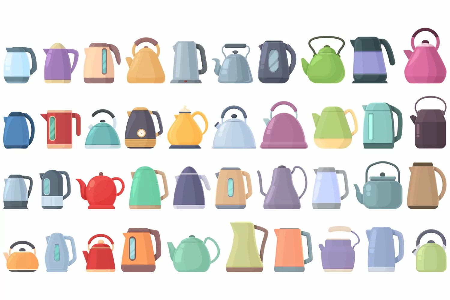 Kettle icons set cartoon vector. Water appliance. Cafe beverage. Formats: JPG, EPS, AI, PSD,PNG, AI