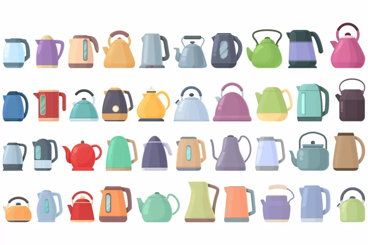 Kettle icons set cartoon vector. Water appliance example image 1