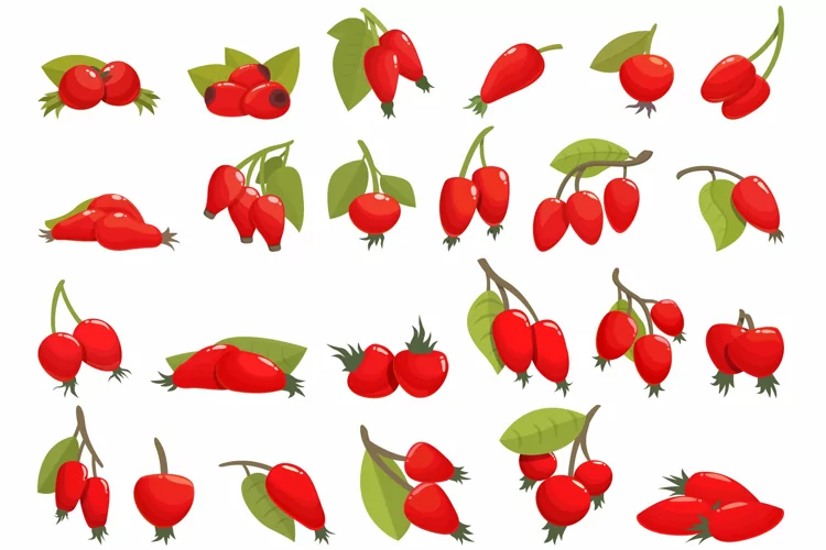Rosehip icons set cartoon vector. Agriculture juice. Berry bio. Formats: JPG, EPS, AI, PSD,PNG, AI