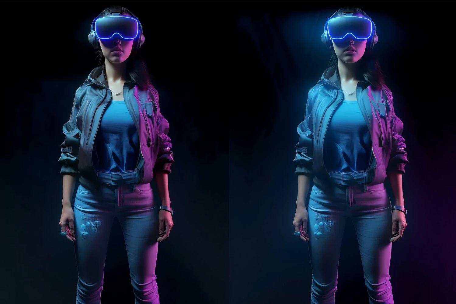 Neon Futuristic Future Girl Woman Technology Glasses Double Reality Vr