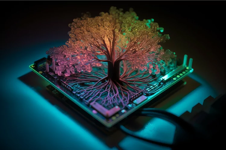 Similar Design Products to Neon tree computer chip web. Generate Ai