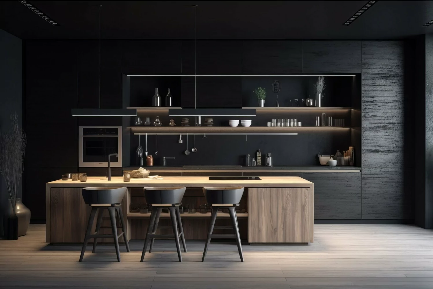 Modern Light Black Style Design Interior Dark Home Kitchen Architecture
