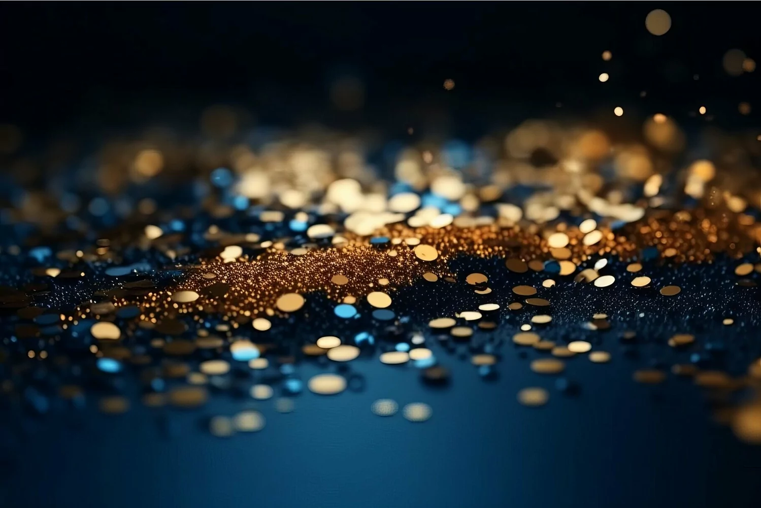 Blue golden abstract particles. Glamour effect. Generate Ai