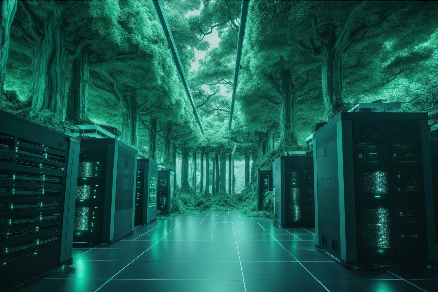 Web Green Futuristic Internet Data Computer Place Center Storage Server