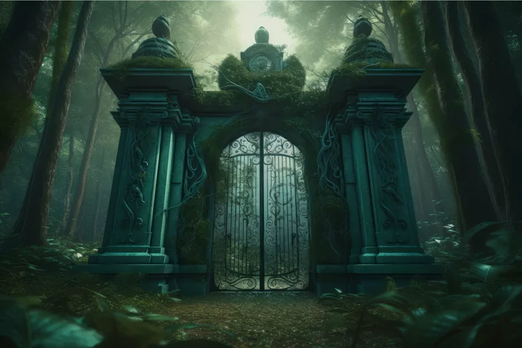 Green forest gate. Generate Ai example image 1