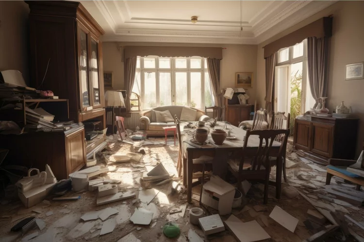 Interior After Background Home Furniture House Living Mess Room Earthquake