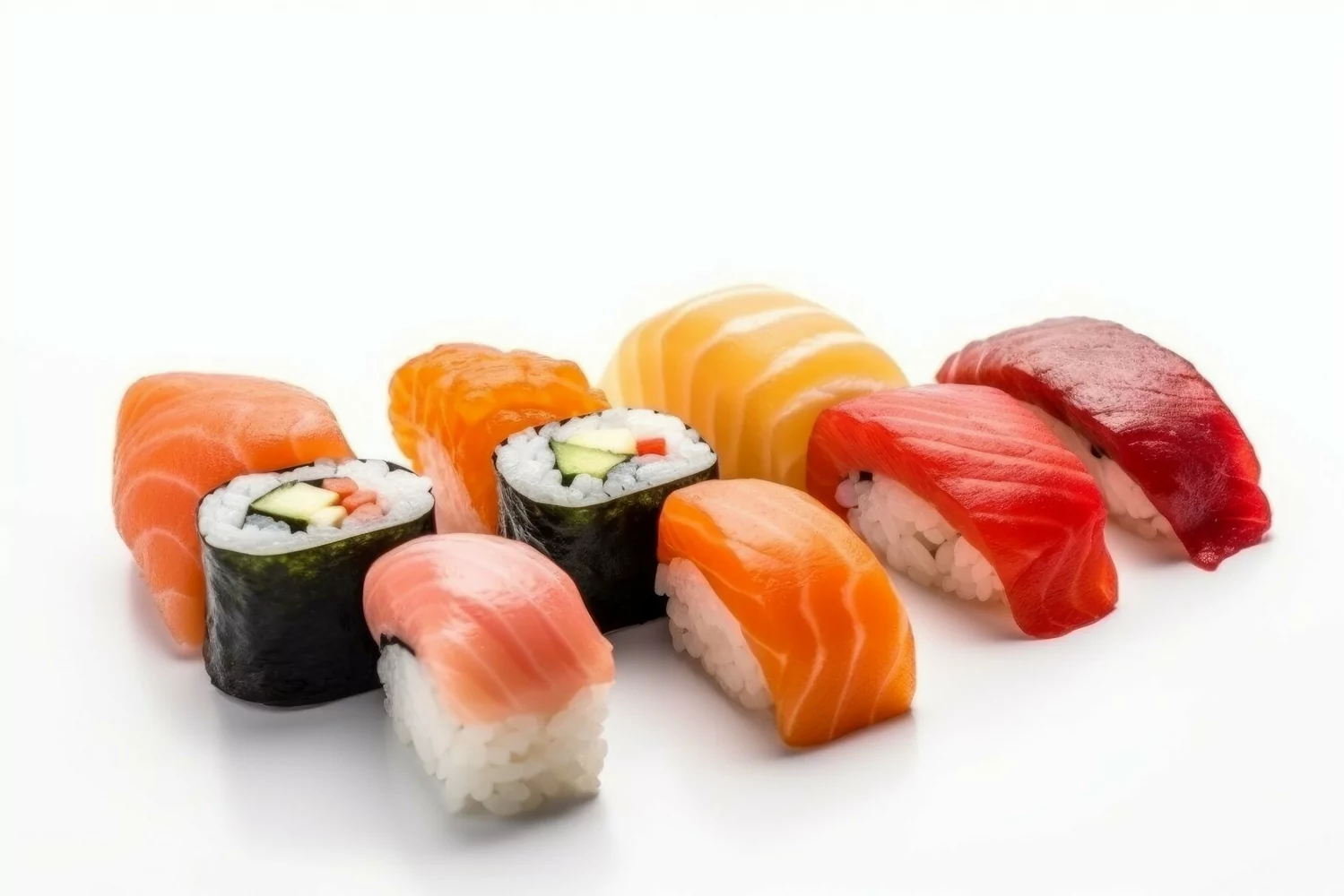 Food Various Japanese Restaurant Fresh Set Background Meal Roll Sushi