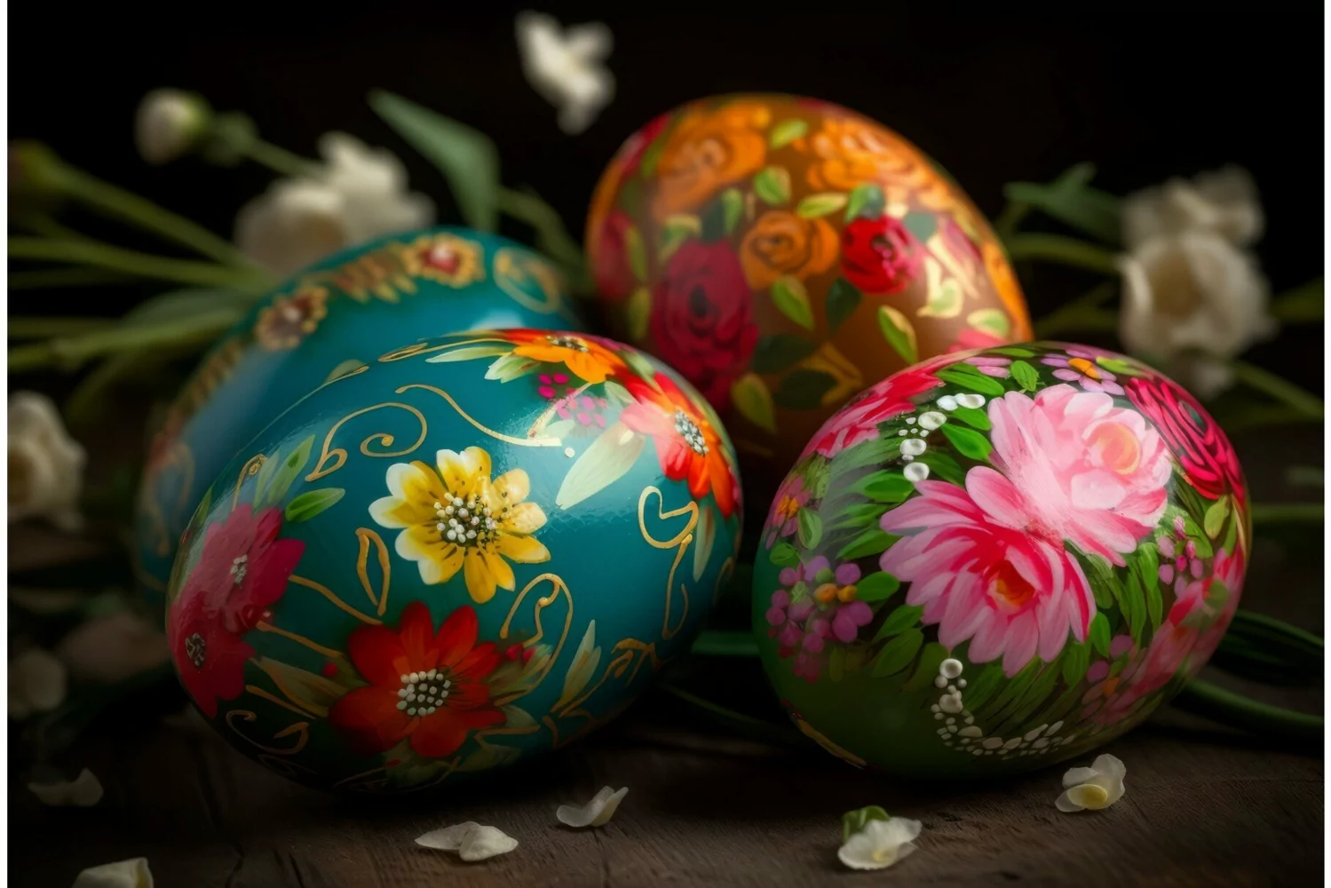 Painted eggs floral design. Generate Ai example image 1