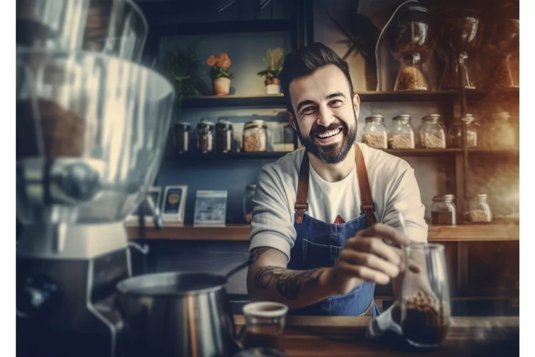 Modern Man Coffee Shop Cafe Employee Attractive Apron Barista Loft
