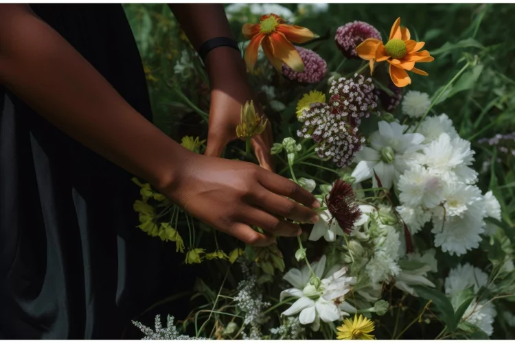 Flowers picking hands beautiful. Bloom floral. Generate Ai