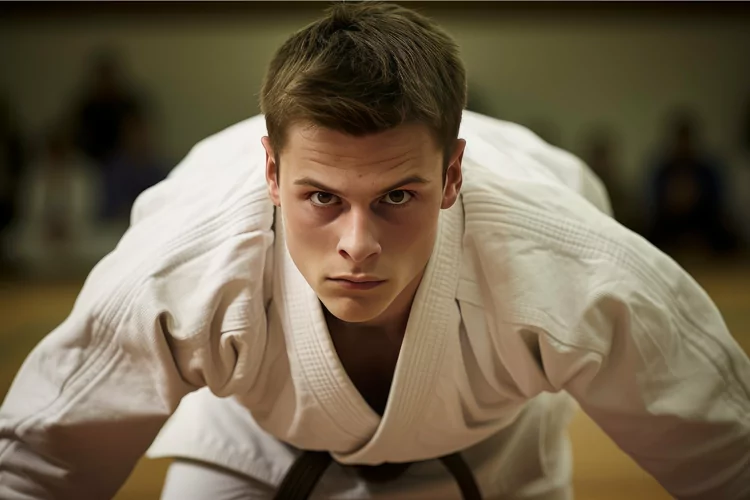 Man Black Sport White Male Belt Closeup Kimono Judo Martial