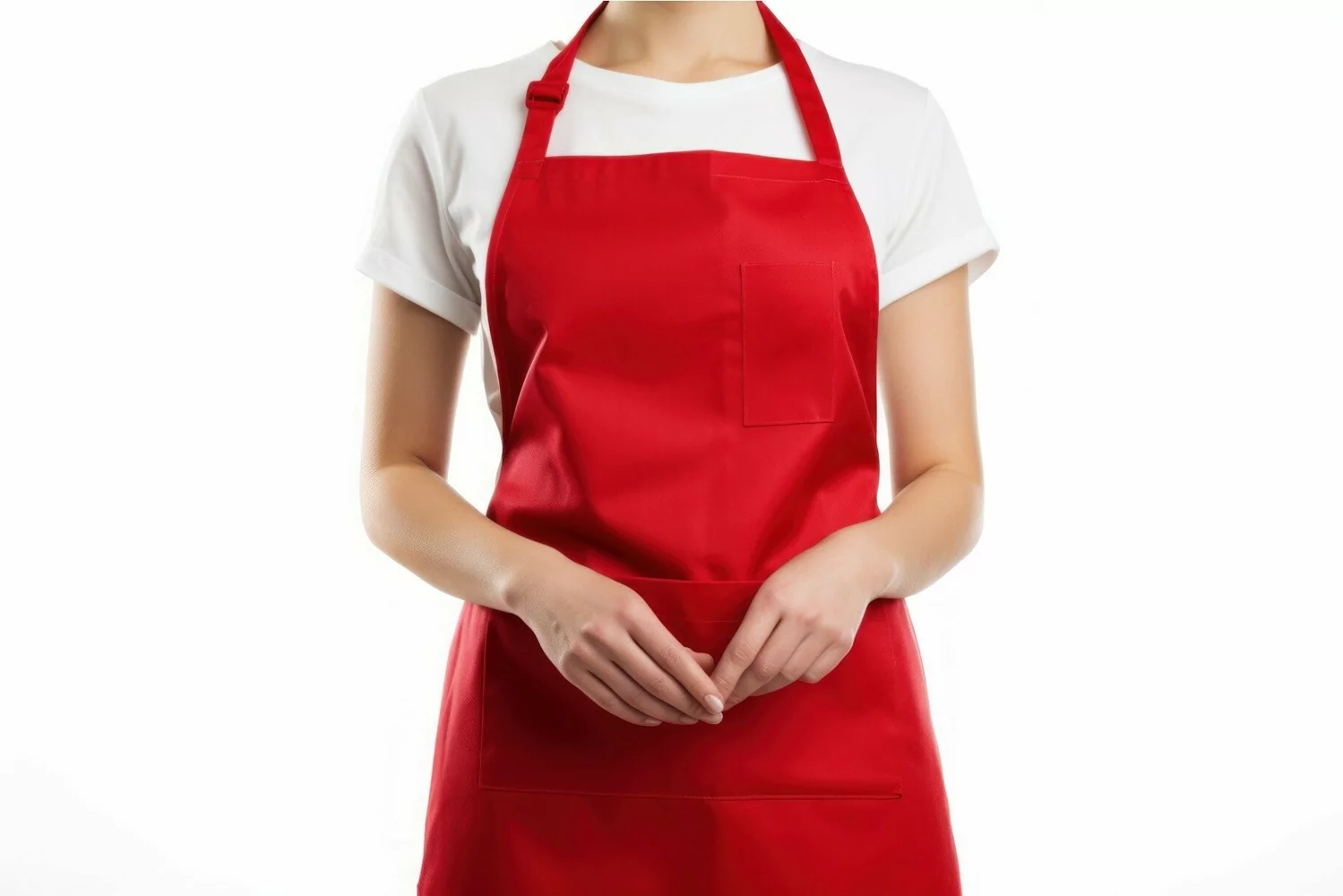 Similar Design Products to Young woman wearing kitchen red textile apron. Generate Ai