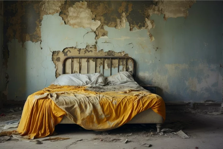 Old Urban Dirty Aged Wall Bed House Room Ruined Rotting
