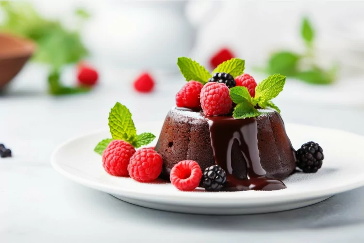 Similar Design Products to Plate with delicious chocolate fondant with fresh berries. G