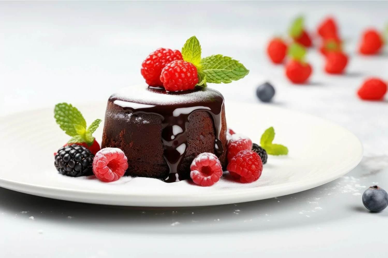 Plate with delicious chocolate fondant berries. Generate Ai example image 1