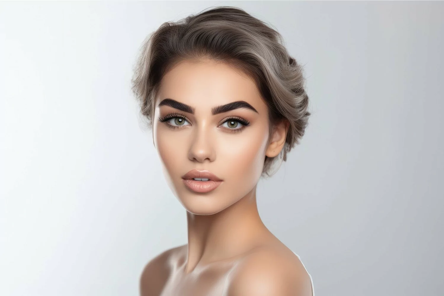 Portrait of beautiful young woman pretty model. Clear body care natural face. Generate Ai