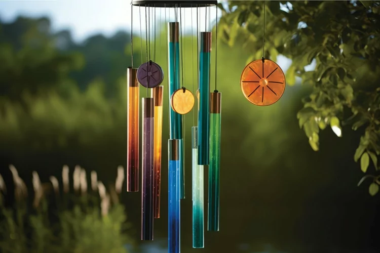 Melodious blend wind sound colorful style. Chime metal home scenic musical. Generate Ai