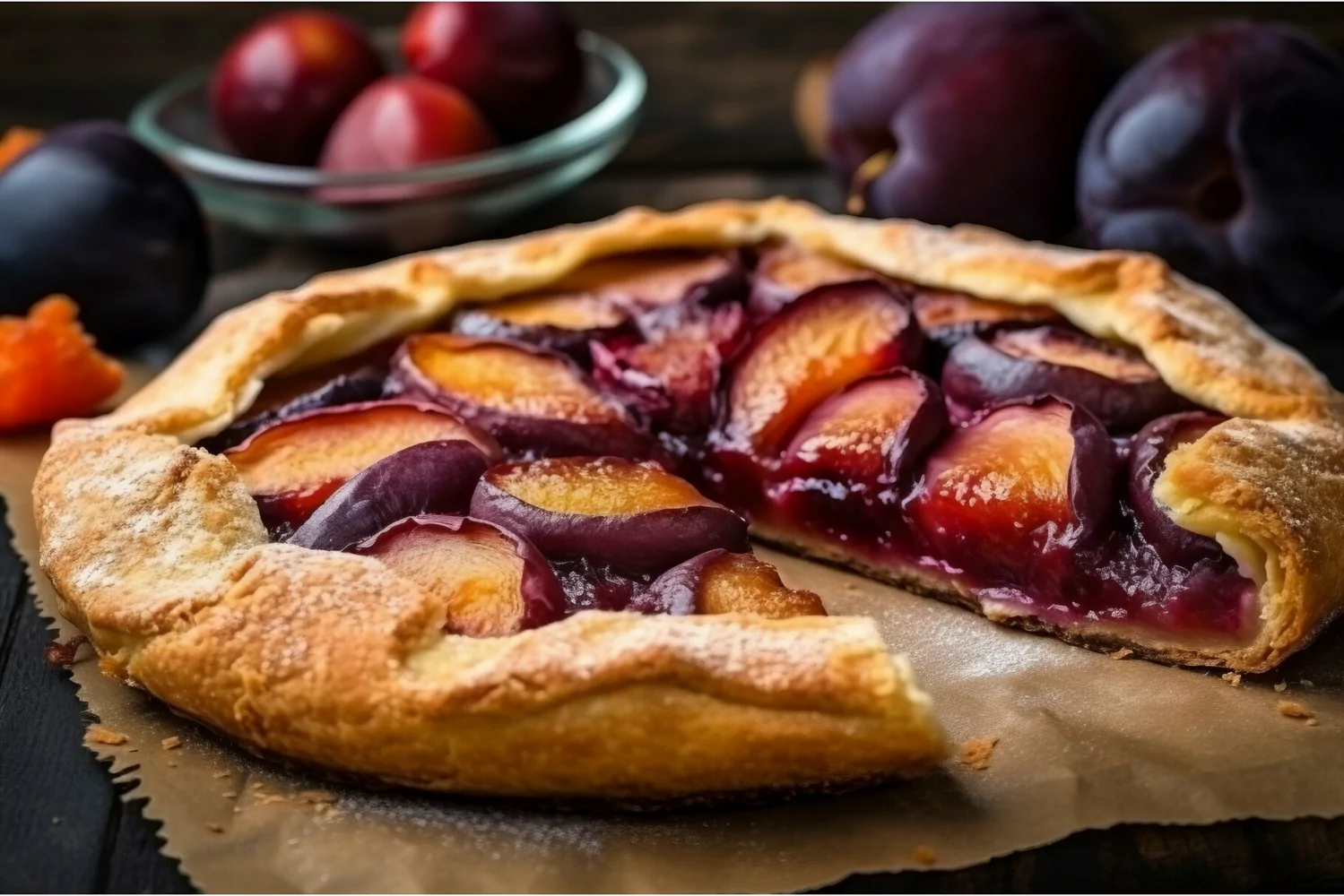 Galette pie plums fruit. Generate Ai example image 1