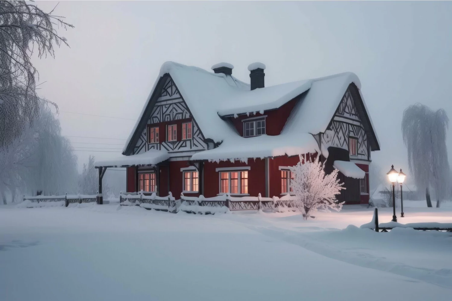 House covered with snow. Suburban residence cottage in winter snowy season. Generate ai