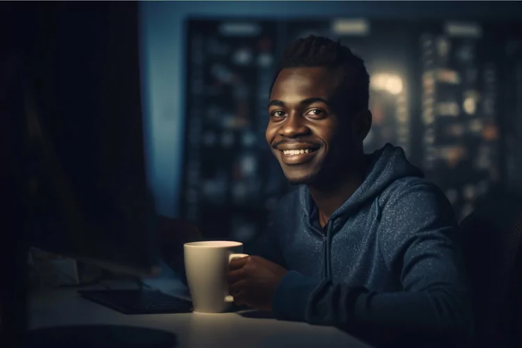 Smile happy black male software developer. Generate Ai