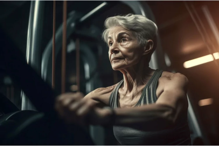 Lifestyle Woman Gym Machine Elderly Positive Fit Older Physical Concentrated