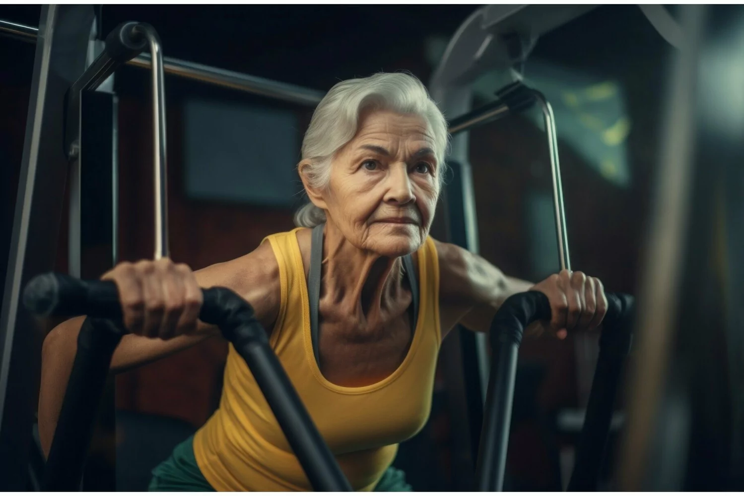 Concentrated fit elderly woman muscle. Generate Ai example image 1