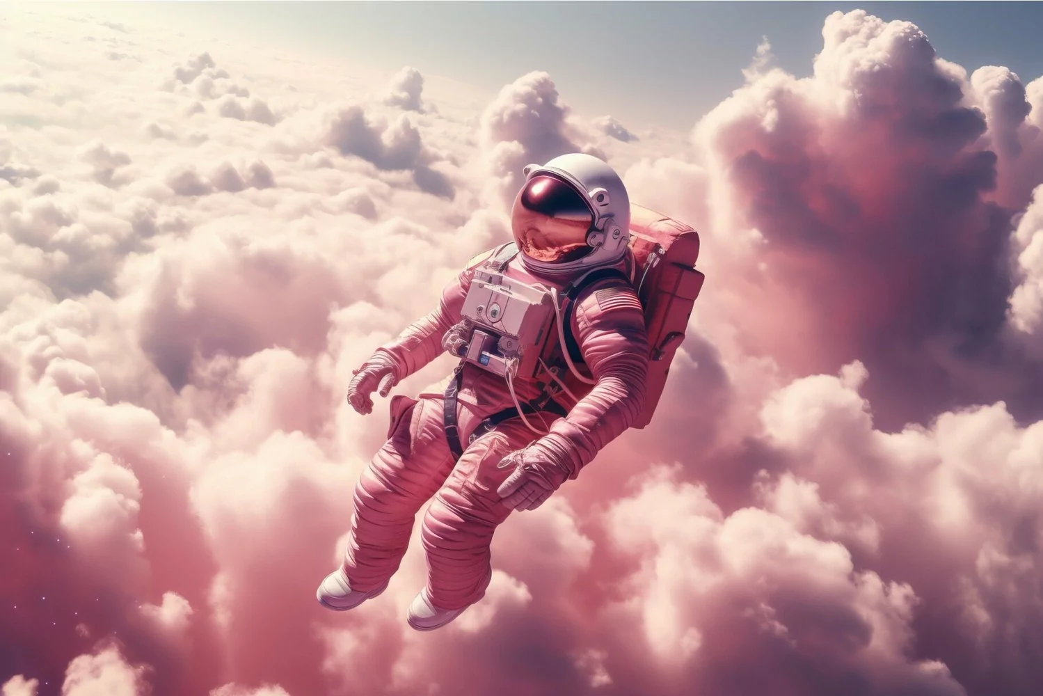 Astronaut floating pink clouds fiction. Generate Ai example image 1