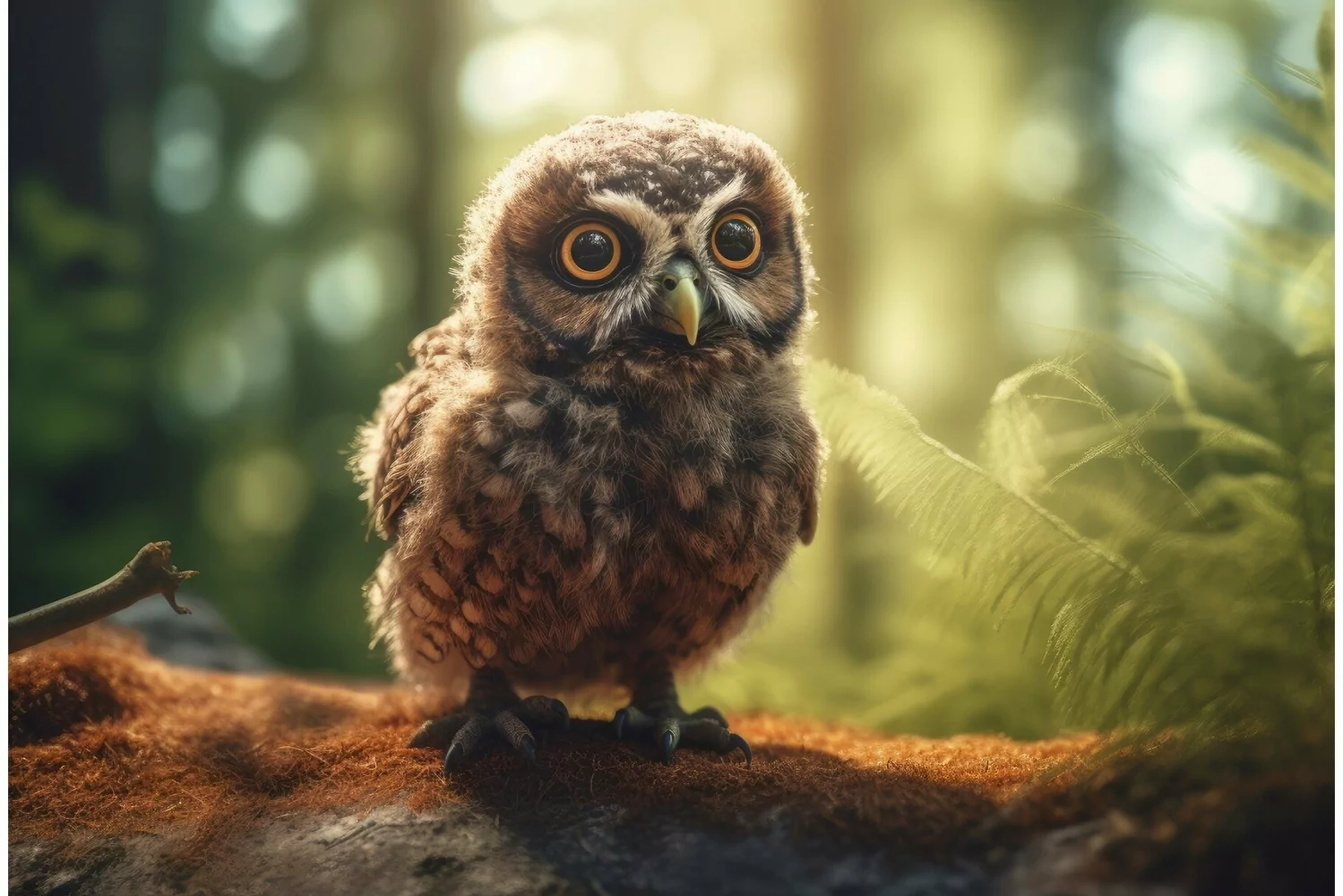 Similar Design Products to Cute tiny owl in green forest habitat. Generate ai