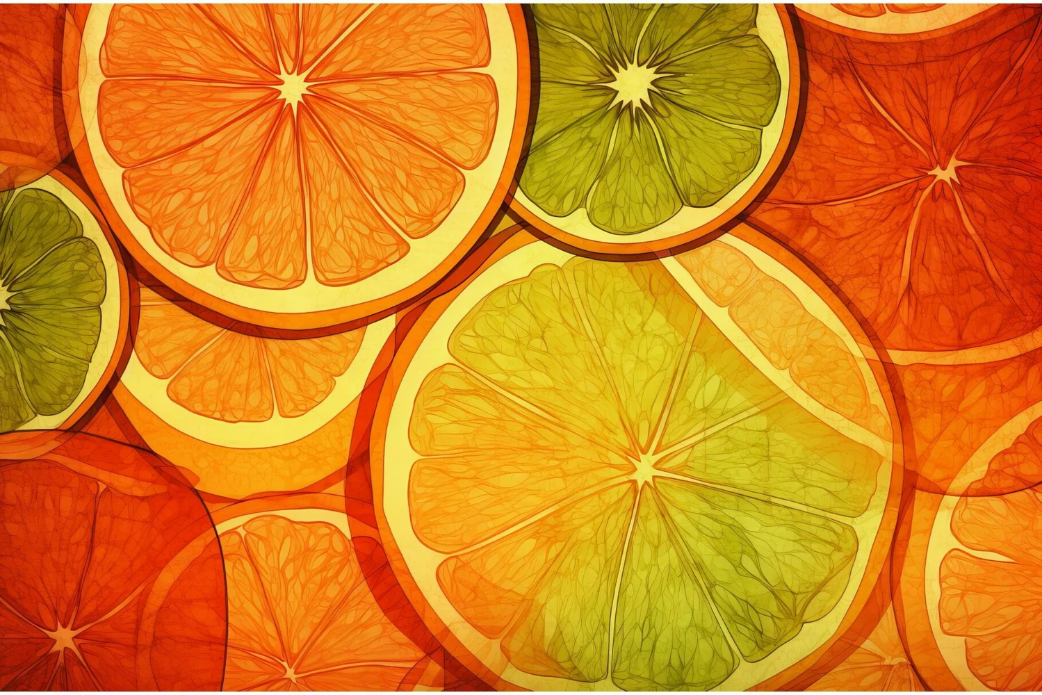 Clementine orange background. Fresh juicy mandarin slices backdrop. Generate ai