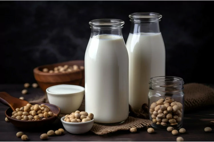Vegan milk bottles. Generate Ai example image 1