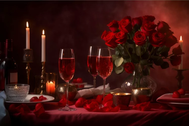Romantic Love Valentines Celebration Table Day Amorous Decorated Crimson Ambiance